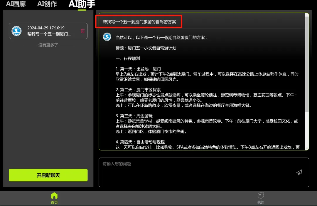 你可以借助“小潮”轻松获取一份 “五一自驾游方案”
