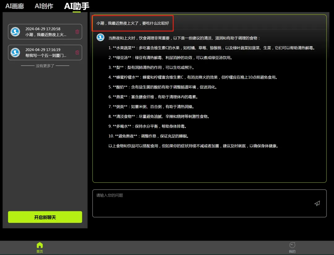 问问“小潮” 调理方案一秒生成