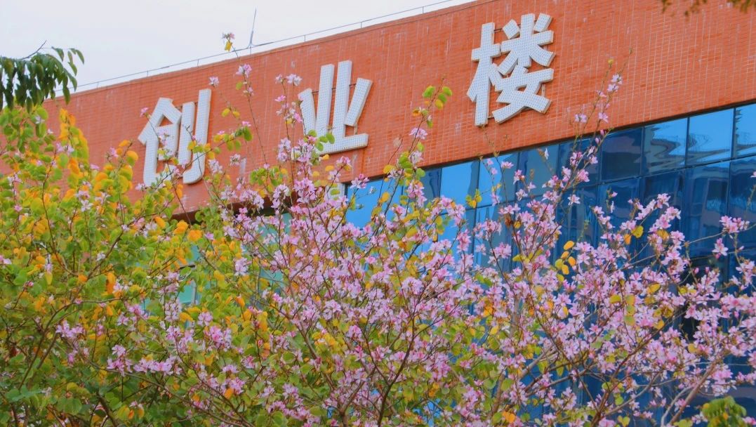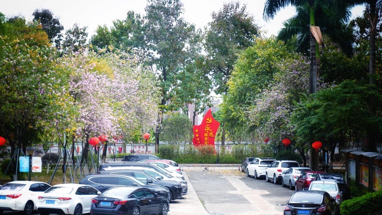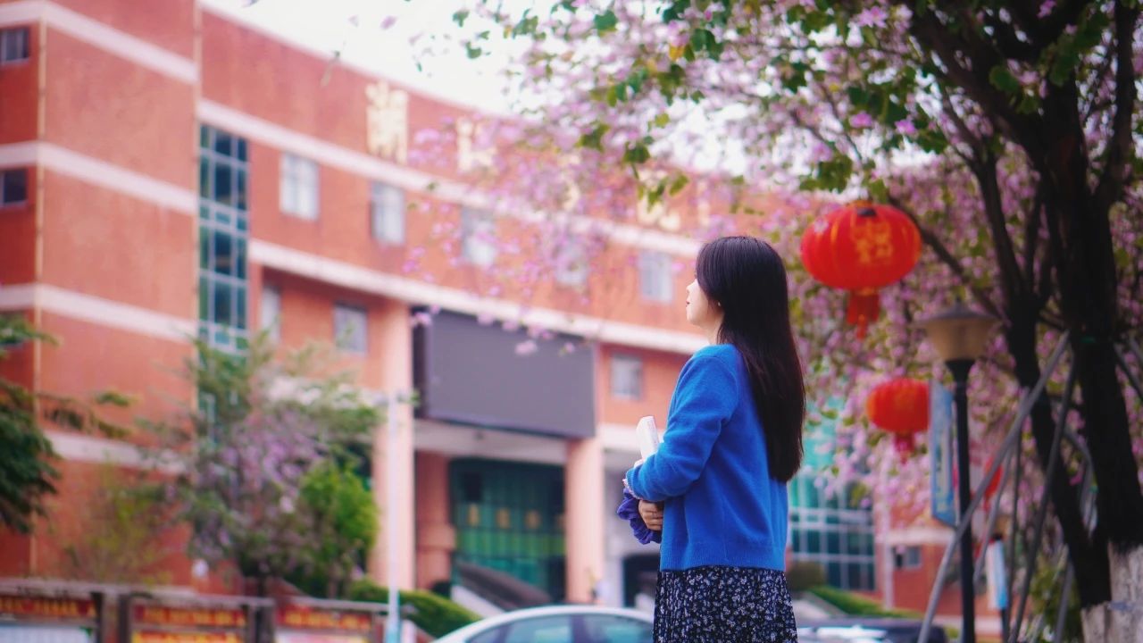 暮春三月 教学楼前的紫荆花抖落满身粉霞