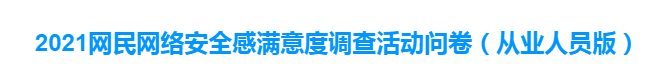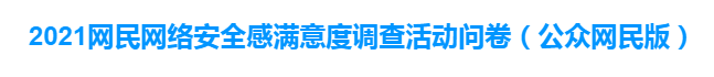 2021网民网络安全感满意度调查活动火爆开启,填写本次活动问卷,写出你对网络现状的心声吧!你的宝贵意见将是净网行动的一份力量,快来一起行动,共同打造安全文明的网络环境吧!