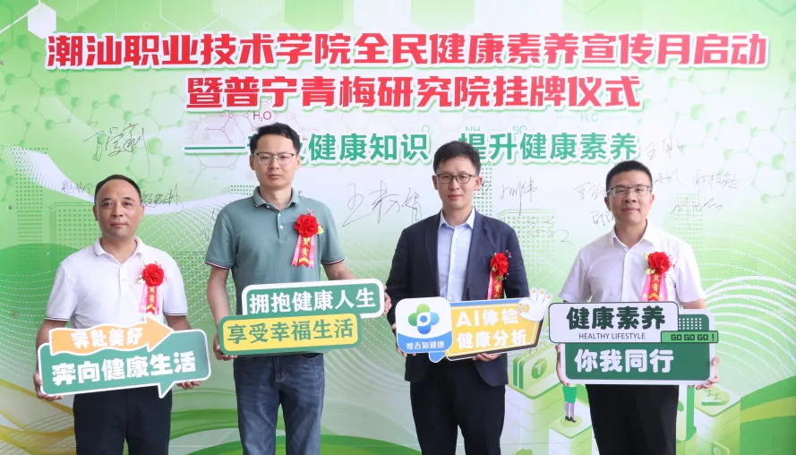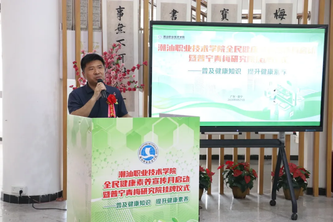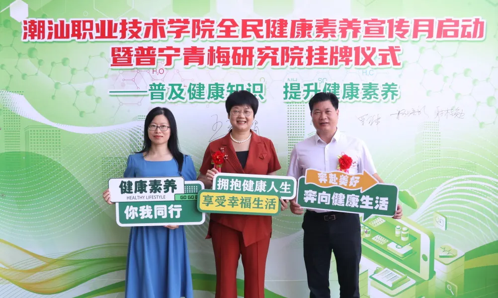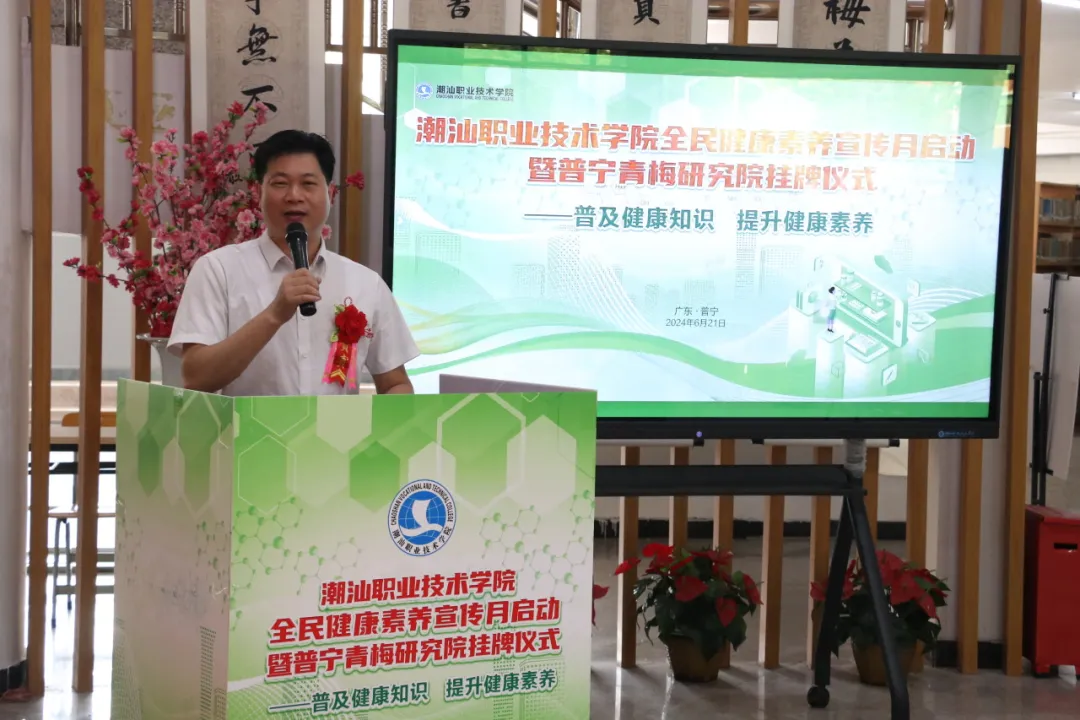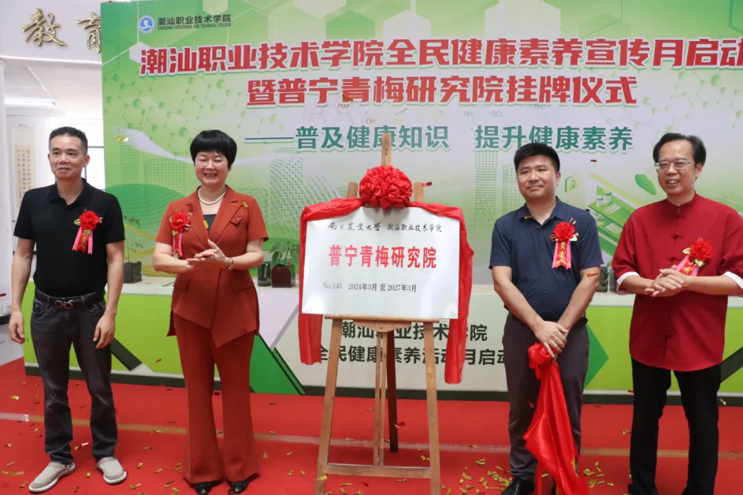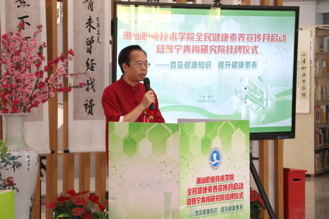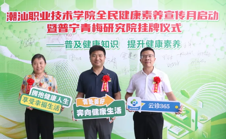 为响应国家“健康中国”战略,提升全民健康素养,6月21日,潮汕职业技术学院(以下简称“潮汕学院”)在图书馆隆重举行全民健康素养宣传月启动暨普宁青梅研究院揭牌仪式。