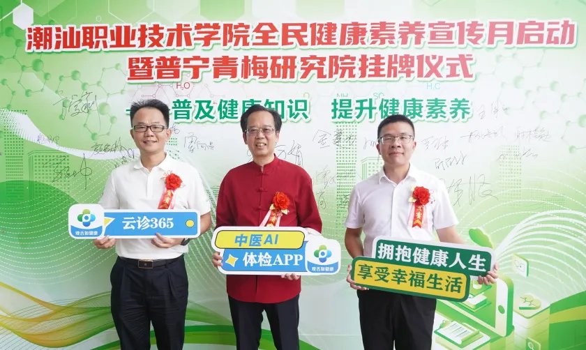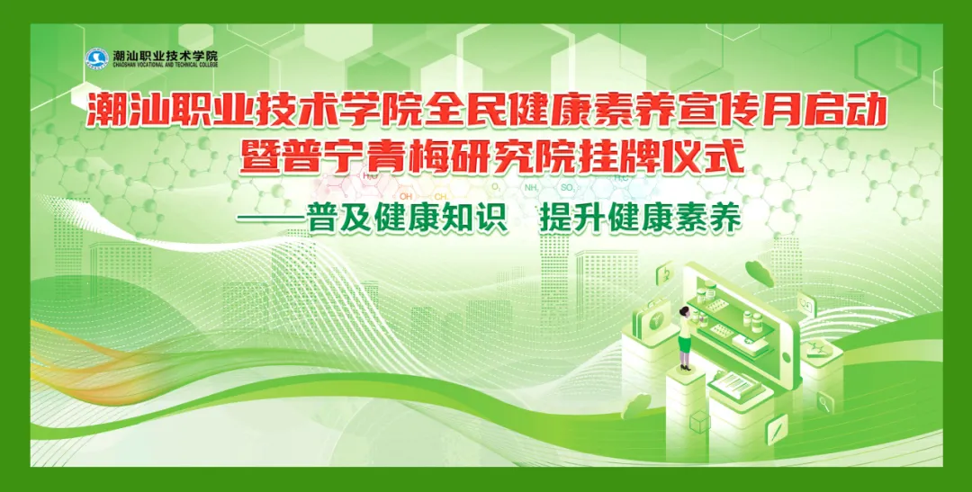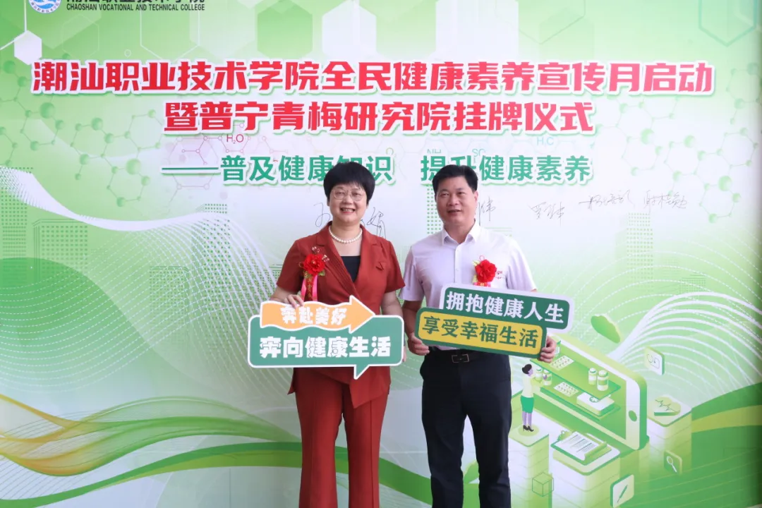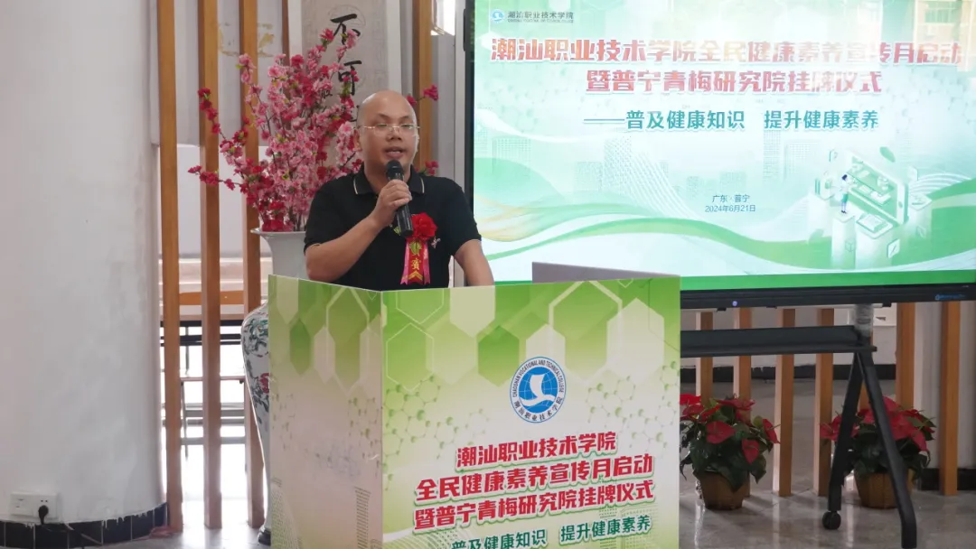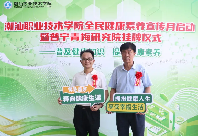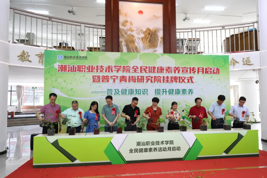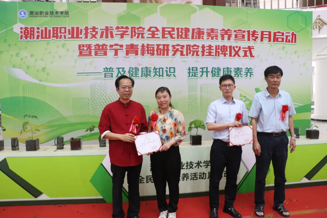 为响应国家“健康中国”战略,提升全民健康素养,6月21日,潮汕职业技术学院(以下简称“潮汕学院”)在图书馆隆重举行全民健康素养宣传月启动暨普宁青梅研究院揭牌仪式。