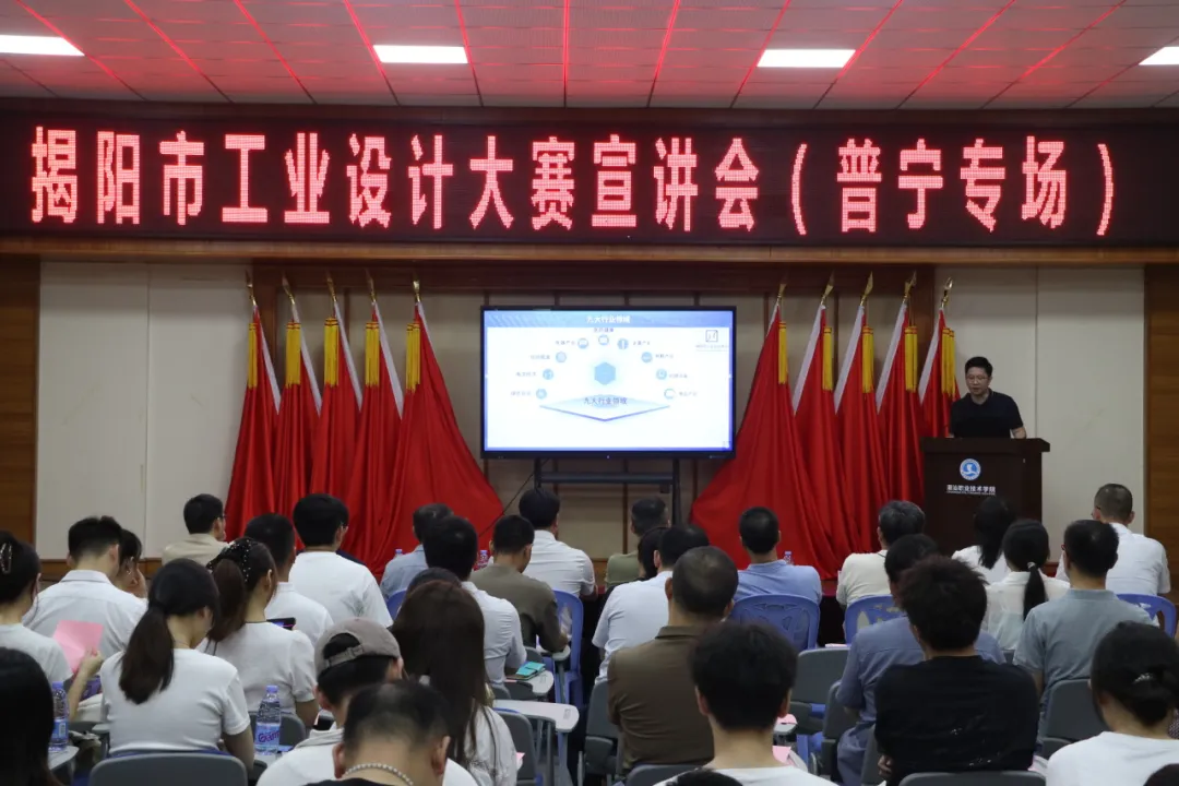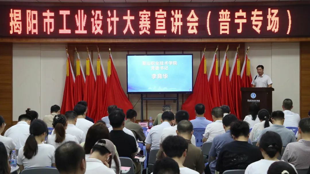 为贯彻落实市委市政府关于强化产业创新能力建设、举办工业设计大赛,发挥工业设计对制造业转型升级和提质增效的引领作用,进一步加大2024年“蒙泰杯”揭阳市工业设计大赛影响力,为参赛者提供深入了解大赛、交流创意想法的平台,7月2日下午,2024年“蒙泰杯”揭阳市工业设计大赛宣讲会(普宁专场)活动在潮汕职业技术学院(以下简称“潮汕学院”)第二报告厅举行。