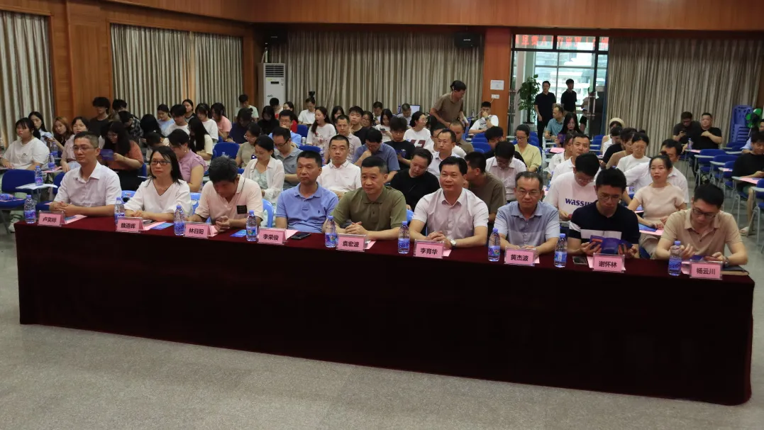揭阳市工业和信息化局副局长袁宏波、普宁市工业和信息化局总工程师李荣俊、普宁职业技术学校校长林日阳、揭阳市工业和信息化局生产服务业科科长魏道晖、揭阳高新区知识产权协同运营中心副主任杨云川、揭阳市科技金融服务中心副主任卢奕标出席会议。我校党委书记李育华、理工学院院长黄杰波、人文学院党总支书记谢怀林参加活动。还有约80名企业代表应邀参与。