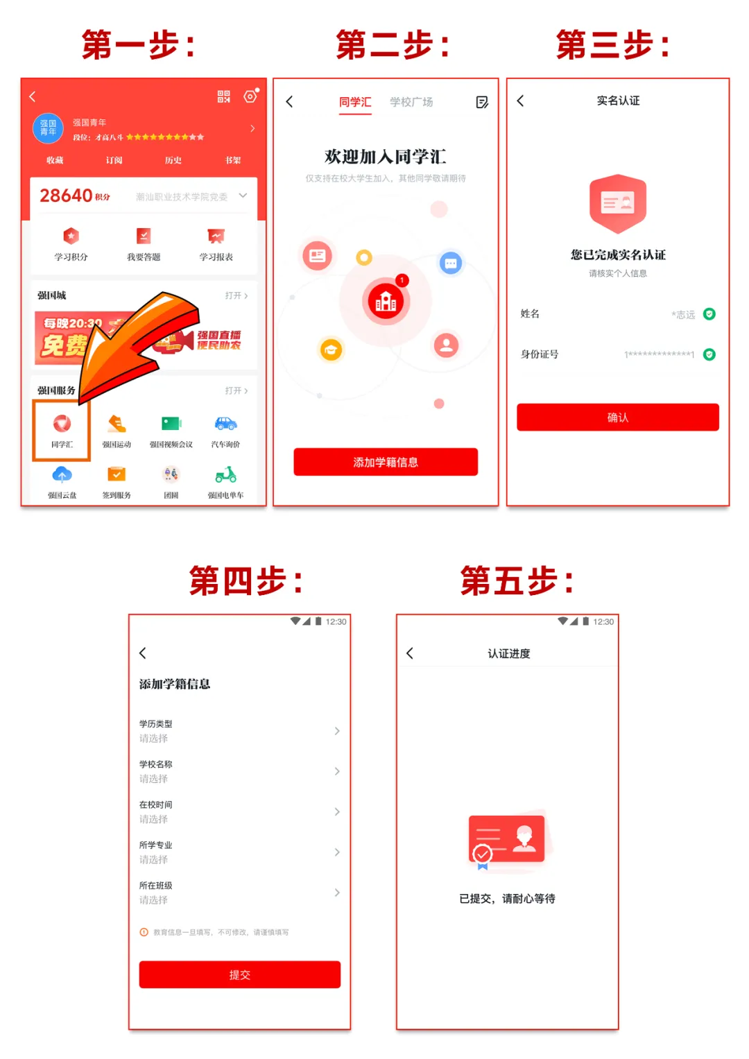 “同学汇”→完成实名认证→