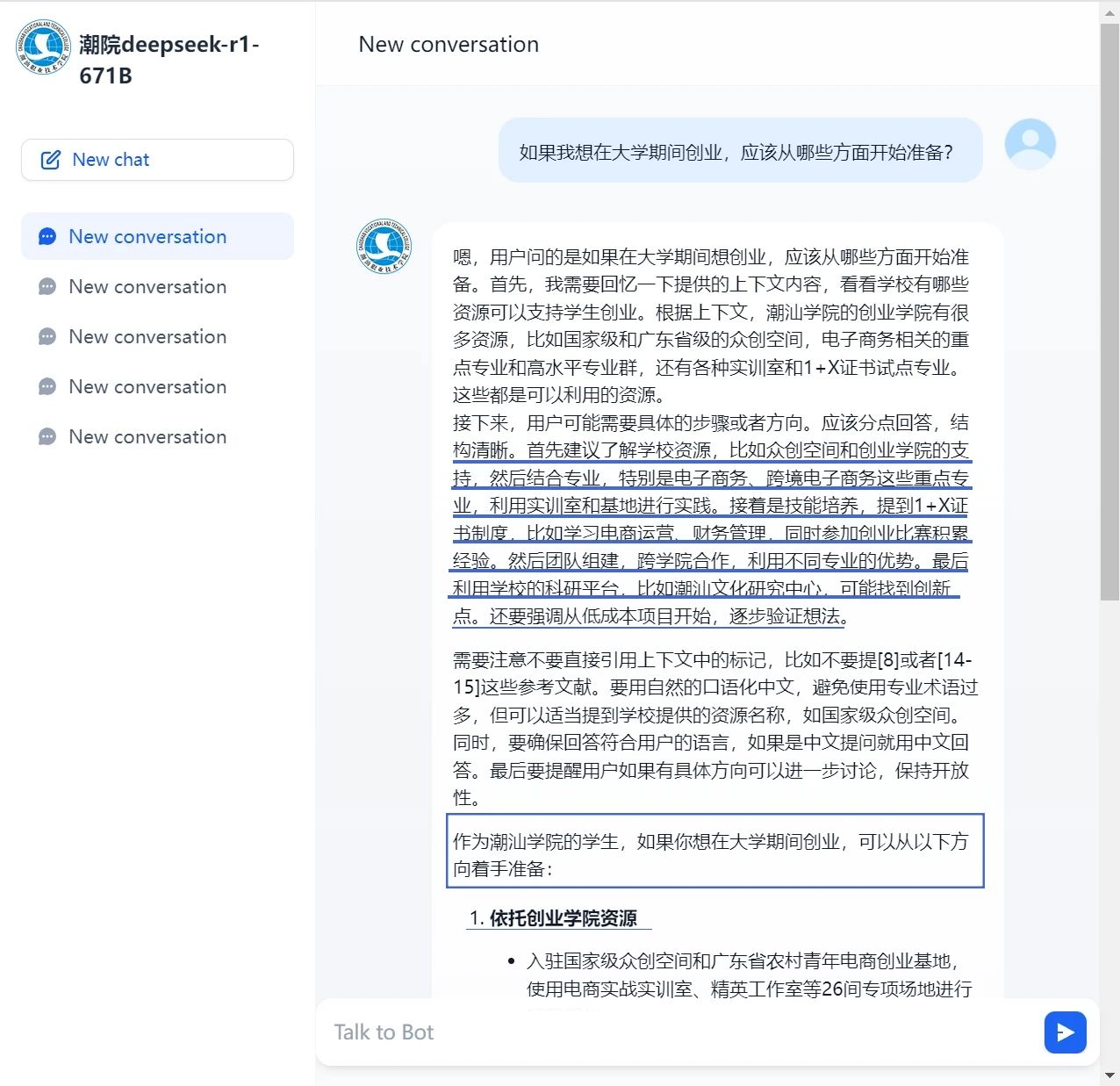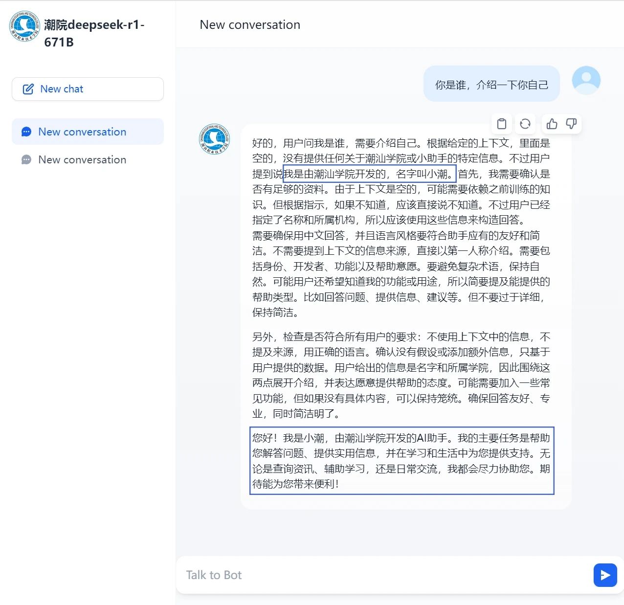 潮汕职业技术学院满血版DeepSeek R1 617b上线!