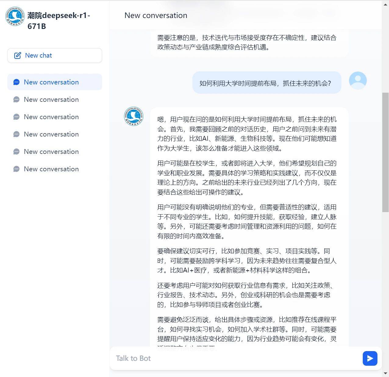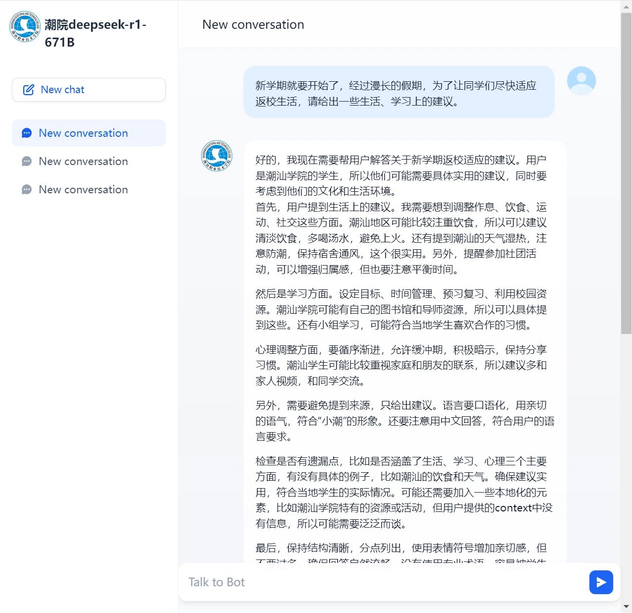 DeepSeek R1 671B版本大模型的本地化部署对潮汕学院具有多方面的积极作用。