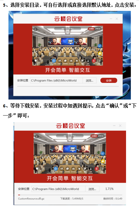 云楼视频会议电脑端下载地址: http://ceb.cspi.edu.cn/uploads/soft/pcyl.exe
