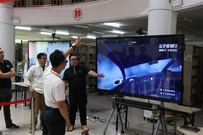 动员大会结束后,领导、嘉宾们来到学院图书馆元宇宙活动体验区,与师生一起感受元宇宙虚拟数字人制作、动作捕捉、裸眼交互、VR(虚拟现实技术)的无限魅力。