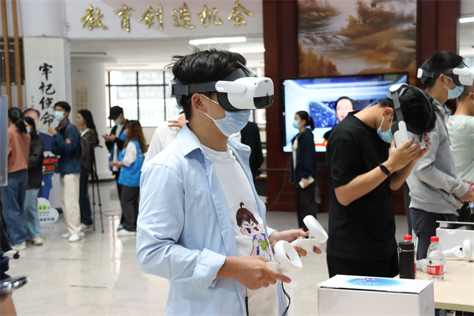 现场十分热闹,许多师生沉浸在各种各样的元宇宙空间,体验由科技赋予的全新世界,有的在游览井冈山革命博物馆,有的在游览张家界旅游风景区,有的在沉浸式观看CBA篮球比赛,有的在通过巨幕抖音看二十大实况,有的在沉浸式零距离观看直播,有的在影院观看巨幕电影…… ![]() ![]() ![]() ![]() ![]() ![]() ![]() ![]() ![]()