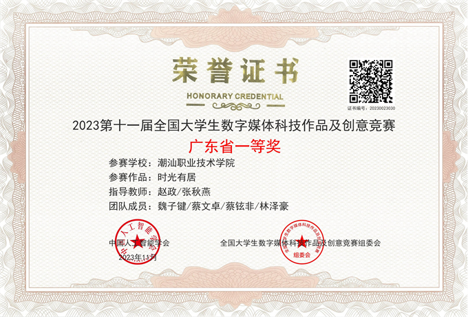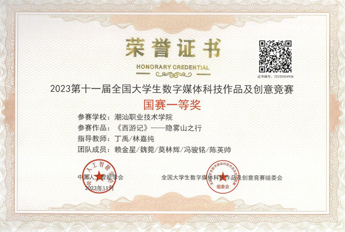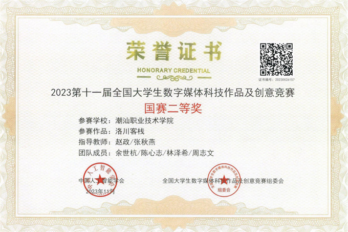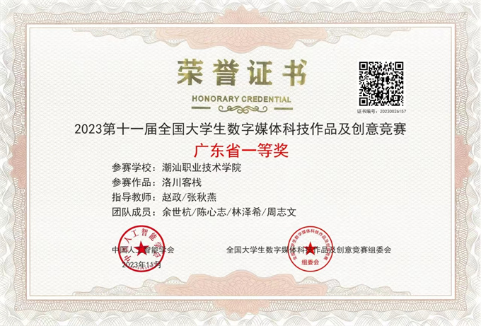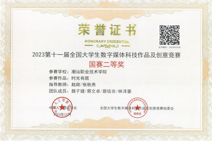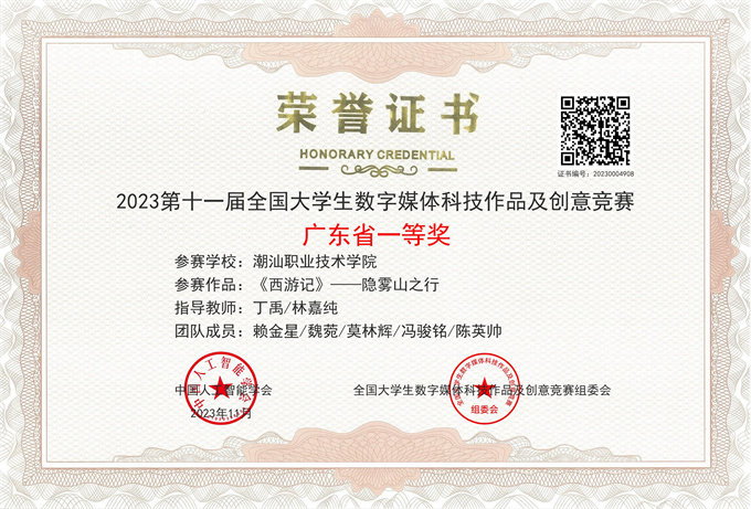 喜讯!近日,由中国人工智能学会、全国大学生数字媒体科技作品及创意竞赛组委会主办的2023第十一届全国大学生数字媒体科技作品及创意竞赛全国现场总决赛成绩揭晓。