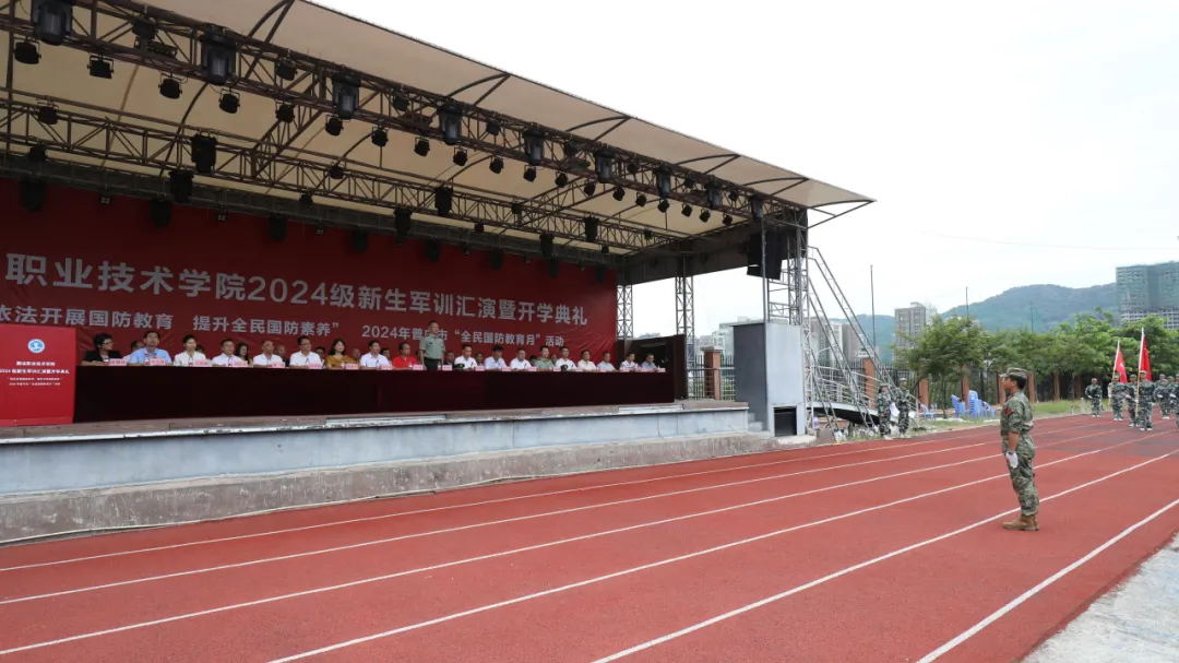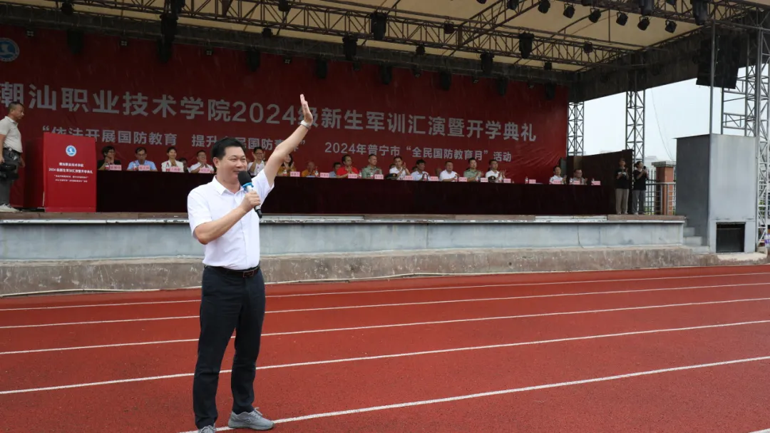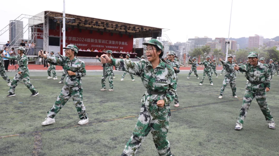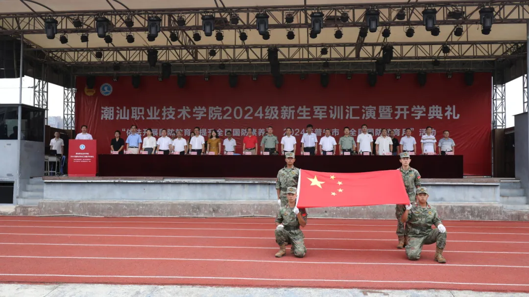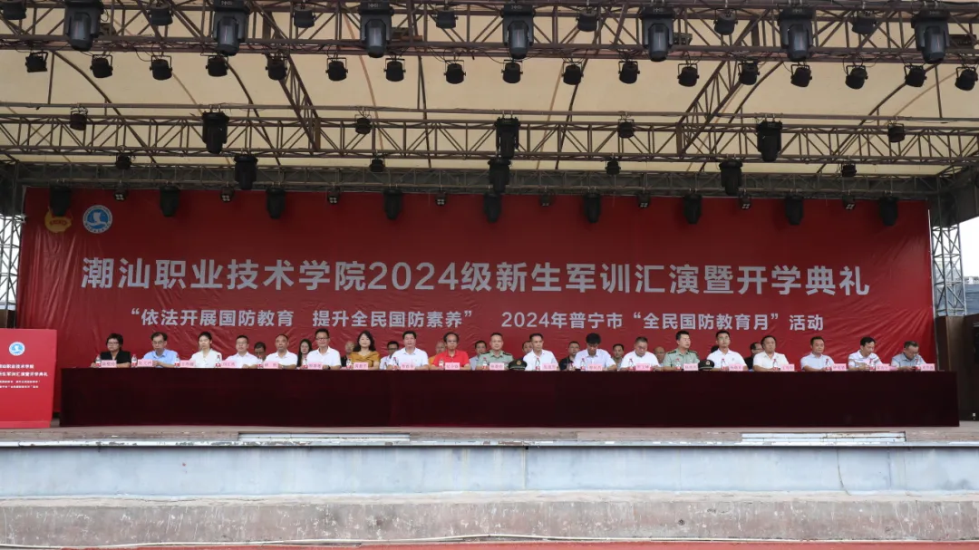 9月22日上午,潮汕学院2024级新生军训汇演暨开学典礼在运动场隆重举行。