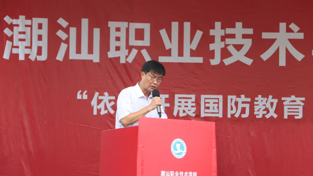 普宁市人民武装部部长蔡教煜、普宁市委宣传部副部长、市文明办主任、市融媒体中心主任张选贤、潮汕学院董事长纪少游、潮汕学院院长曾向昌、潮汕学院党委书记李育华、普宁市人民武装部军事科负责人赖晓桐、普宁市委宣传部宣传教育和文艺组组长黄惠芹、民兵教官队长杨晓东等领导出席现场。