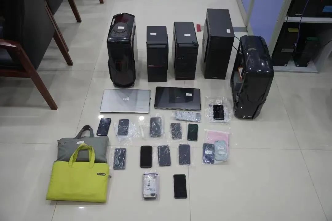 阳江警方在收网行动中,缴获手机40部、电脑6台和其他作案工具一批。