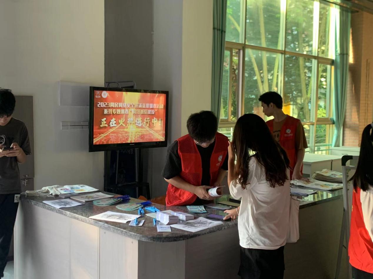 与此同时,网络与信息化中心在科技楼机房教室组织学生积极填写2023网民网络安全感满意度调查活动“网络诚信建设”专题调查问卷,并发放“网络安全知识记事本”,倡导学生增强网络诚信意识,弘扬诚信文化,树立文明用网理念,共同维护良好的网络生态环境,进一步筑牢校园安全防线。